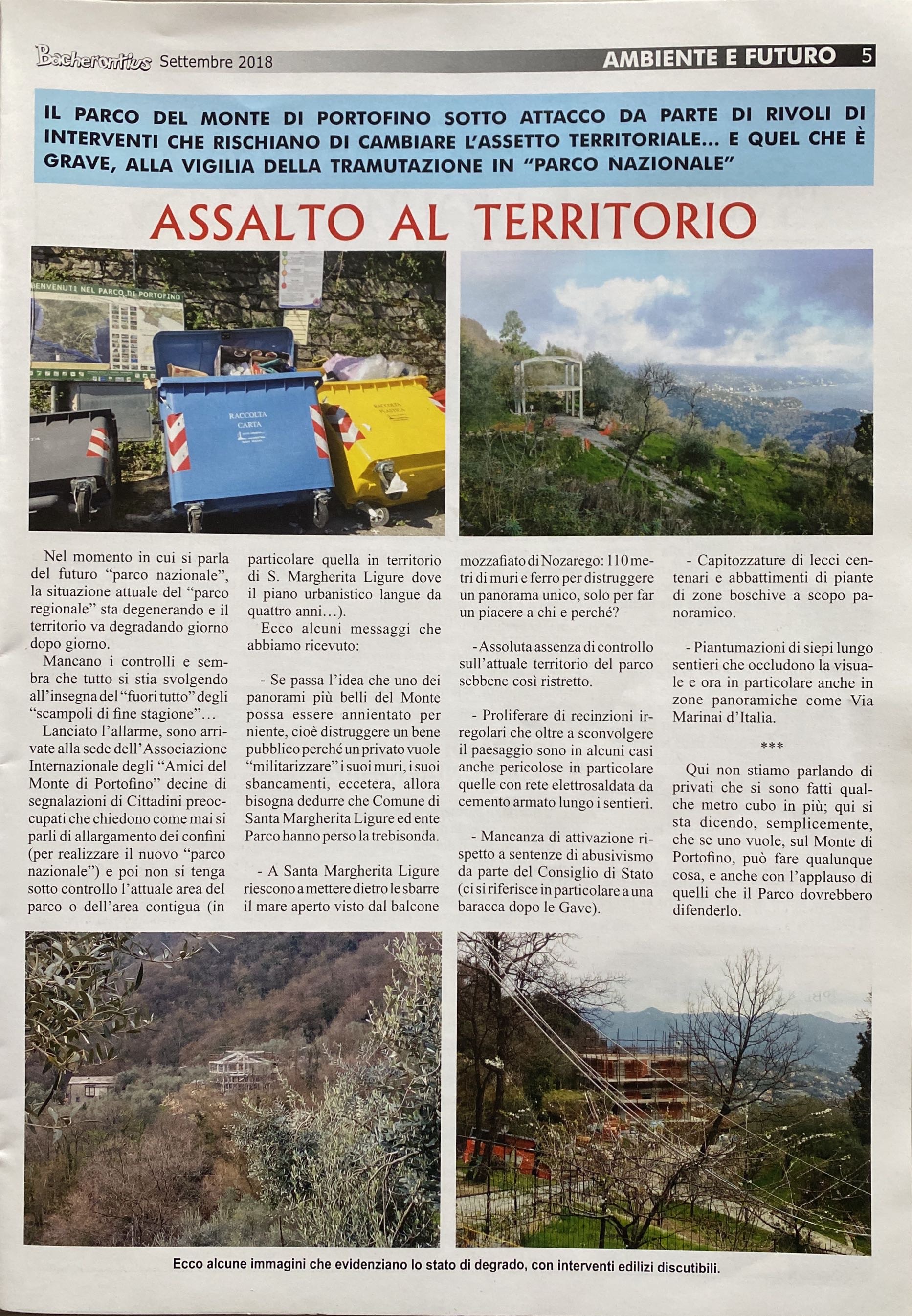 Grazie all’impegno di un pubblicista, il Parco Nazionale di Portofino è oggi una realtà a beneficio dell’intero Paese, dopo che per anni la mancata applicazione della legge nazionale  ha consentito l’assalto al territorio limitrofo al Parco Regionale.